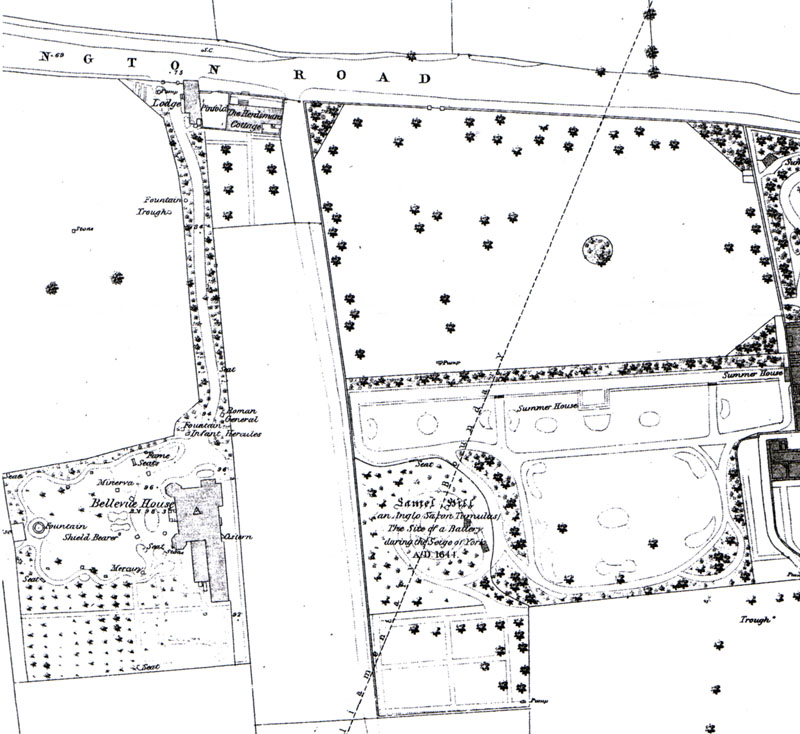 Belle Vue Lodge no longer exists, having been demolished to make way for the building of Fairfax House, part of the University of York campus. An 1851 map of the location shows where the Lodge stood and matches the 1881 census which lists Joseph and Wife Mary with their three daughters and youngest son Joseph (then aged 11). Belle Vue Lodge stood on the main road between the entrance to Belle Vue Terrace and The Retreat estate further up the hill. Belle Vue House is where Fairfax House now stands. All that remains of The Lodge is a piece of stone which is probably the base of the steps to the front door, which can be seen on the map just above the letter 'e' of Lodge. The 1891 census shows Joseph was still employed as a Gardener at the age of 69. He still resided at Belle Vue Lodge which he shared with his wife Mary, daughters Polly (listed as Mary), Emma and son Joseph, who is now aged 21 and employed as an engineer. Joseph's daughter Annie married Henry Nicholson and died in 1886 aged 27. |